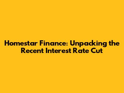Alright, finance enthusiasts! Let's dive into the nitty-gritty of the recent Homestar Finance interest rate cut. It's the kind of news that gets everyone's attention, from seasoned investors to first-time homebuyers. In this article, we'll break down what this cut actually means, who it impacts, and how you can position yourself to make the most of it. We'll explore the potential benefits for borrowers, the broader economic implications, and, of course, what it all means for your wallet. So, buckle up, grab your favorite beverage, and let's get started. Understanding interest rates can be a bit like navigating a maze, but don't worry, we'll guide you through it. This rate cut could be a golden opportunity for some, but it’s crucial to understand the details before making any decisions. We'll cover everything from the immediate effects to the long-term impact, ensuring you have a clear picture of the situation.
