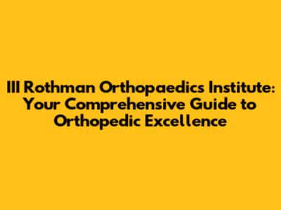 III Rothman Orthopaedics: Your Guide To Expert Care