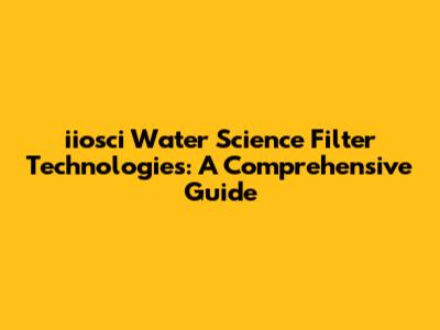 Iiosci Water Science Filter Technologies: A Comprehensive Guide