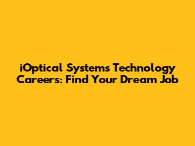 IOptical Systems Technology Careers: Find Your Dream Job
