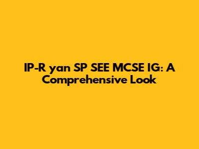 IP-R Yan SP SEE MCSE IG: A Comprehensive Look