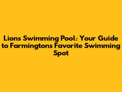 Lions Pool: Your Guide To Farmington's Favorite Swimming Spot