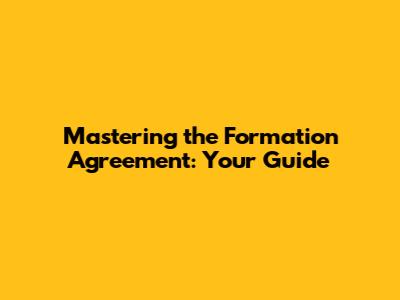 Mastering The Formation Agreement: Your Guide