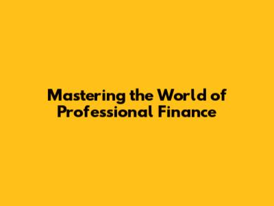 Mastering The World Of Professional Finance