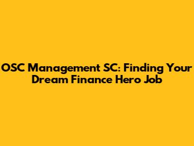 OSC Management SC: Finance Hero Jobs