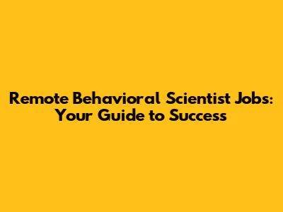 Remote Behavioral Scientist Jobs: Your Guide To Success