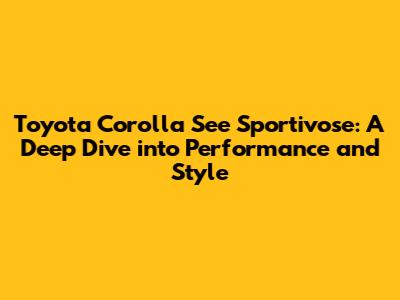 Toyota Corolla See Sportivose: Unveiling Performance And Style